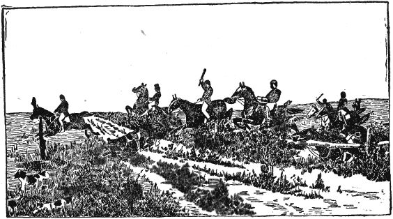 "Now we shall see the hare," said my mother; and just then a hare, wild with fright, rushed by and made for the woods. On came the dogs; they burst over the bank, leaped the stream and came dashing across the field, followed by the huntsmen. Several men leaped their horses clean over, close upon the dogs. The hare tried to get through the fence; it was too thick, and she turned sharp around to make for the road, but it was too late; the dogs were upon her with their wild cries; we heard one shriek, and that was the end of her. One of the huntsmen rode up and whipped off the dogs, who would soon have torn her to pieces. He held her up by the leg, torn and bleeding, and all the gentlemen seemed well pleased.